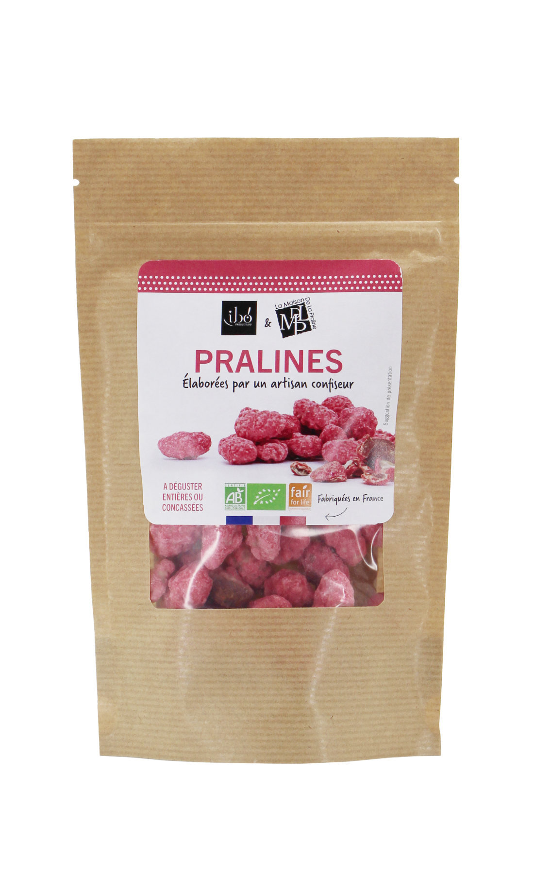 Les pralines roses entières bio IBO! sont une gourmandise emblématique de la pâtisserie française. Élaborées à partir d’amandes croquantes, enrobées de sucre de canne bio, elles se distinguent par leur couleur rose naturelle obtenue grâce à des concentrés végétaux. Certifiées bio et issues du commerce équitable Fair For Life, elles allient plaisir, qualité et engagement responsable.
